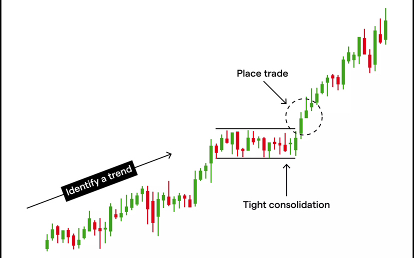 • Прапор (Flag): Коротка консолідація після потужного руху.