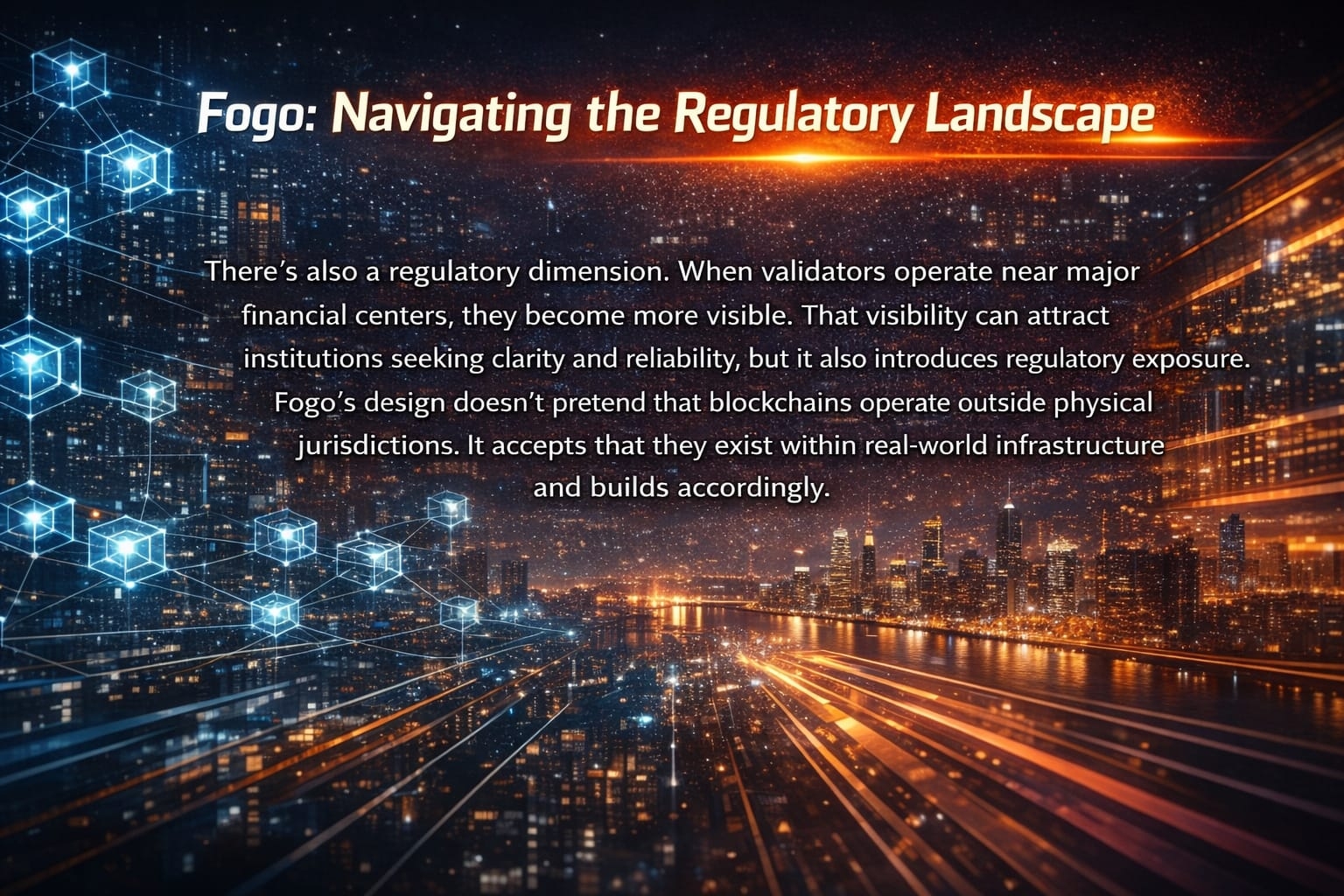 There’s also a regulatory dimension. When validators operate near major financial centers, they become more visible. That visibility can attract institutions seeking clarity and reliability, but it also introduces regulatory exposure. Fogo’s design doesn’t pretend that blockchains operate outside physical jurisdictions. It accepts that they exist within real-world infrastructure and builds accordingly.