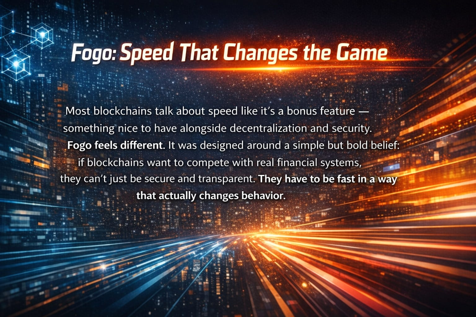 Most blockchains talk about speed like it’s a bonus feature — something nice to have alongside decentralization and security. Fogo feels different. It was designed around a simple but bold belief: if blockchains want to compete with real financial systems, they can’t just be secure and transparent. They have to be fast in a way that actually changes behavior.