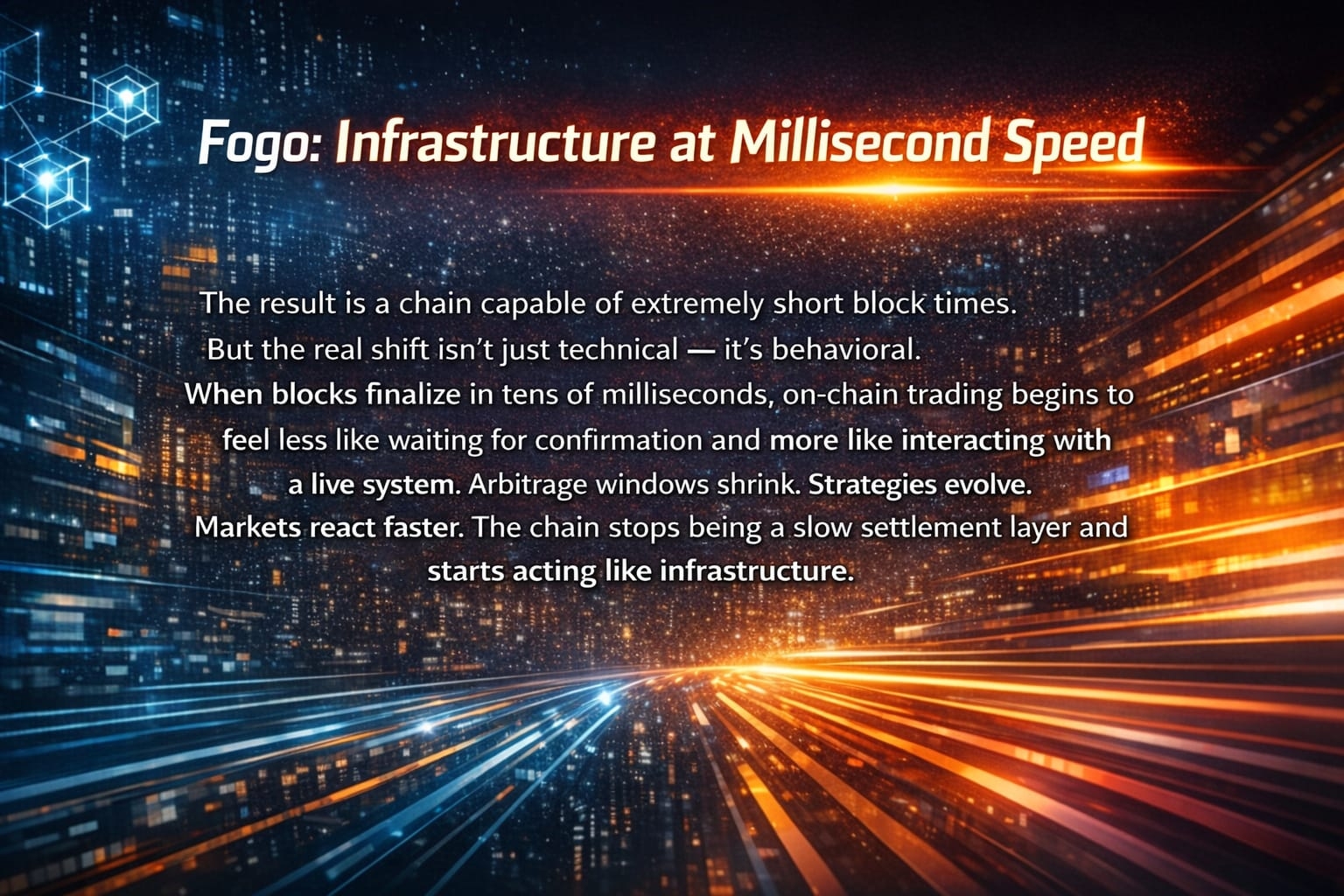 In that sense, Fogo feels less like a typical crypto launch and more like a bridge between two worlds: decentralized consensus and the relentless efficiency of modern finance. It doesn’t claim to solve every problem. Instead, it pushes one variable — time — to its limit and asks what new behaviors emerge when waiting is no longer part of the equation.