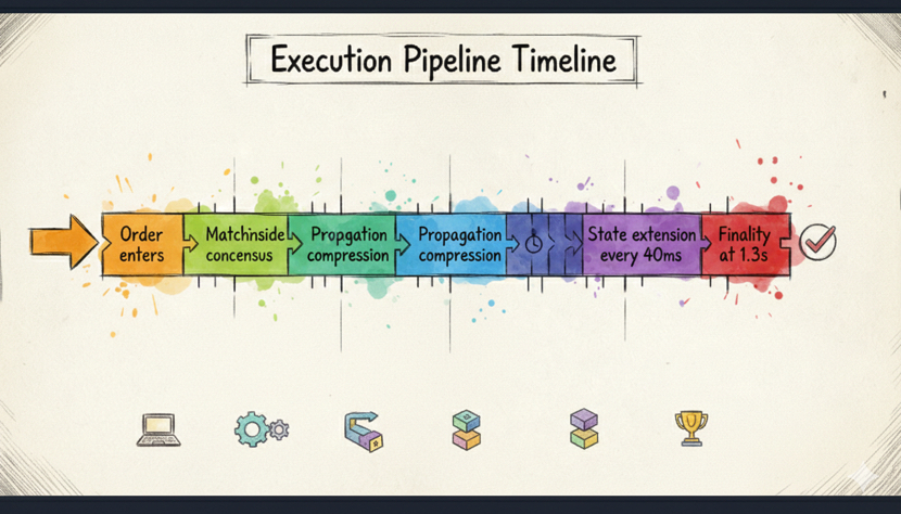 At 40ms cadence, the chain is not just advancing state. It is rotating a venue. Order submission, matching, propagation, and ledger extension move through one deterministic pipeline. Multi local consensus keeps the surface aligned. Turbine compresses the propagation path so convergence happens fast. At 1.3s finality, settlement is anchored without a soft intermediate phase where interpretation lingers.