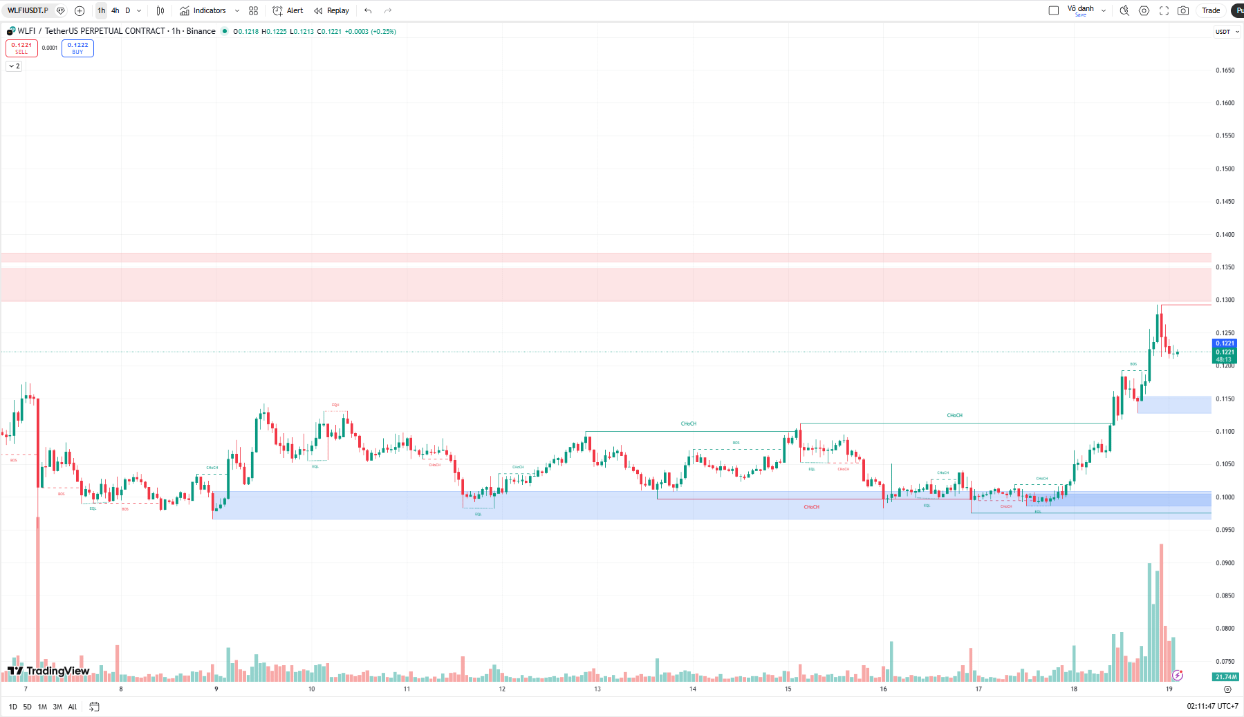 • Phá vỡ: Nếu vượt qua được $0.130 với volume lớn, WLFI sẽ mở rộng biên độ tăng lên vùng kháng cự tiếp theo trên khung ngày là $0.145 - $0.150.