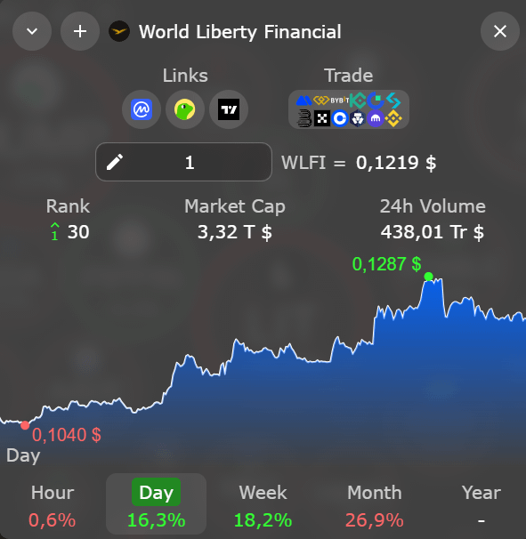 $WLFI hiện đang là tâm điểm chú ý khi ghi nhận mức tăng trưởng ấn tượng trong 24 giờ qua.