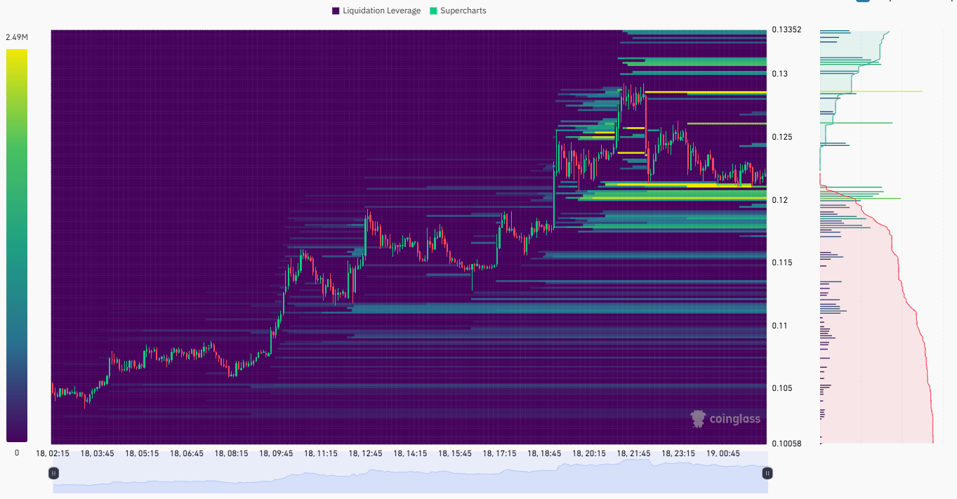 • Một dải thanh khoản cực dày đang tập trung tại vùng giá $0.128 - $0.130.