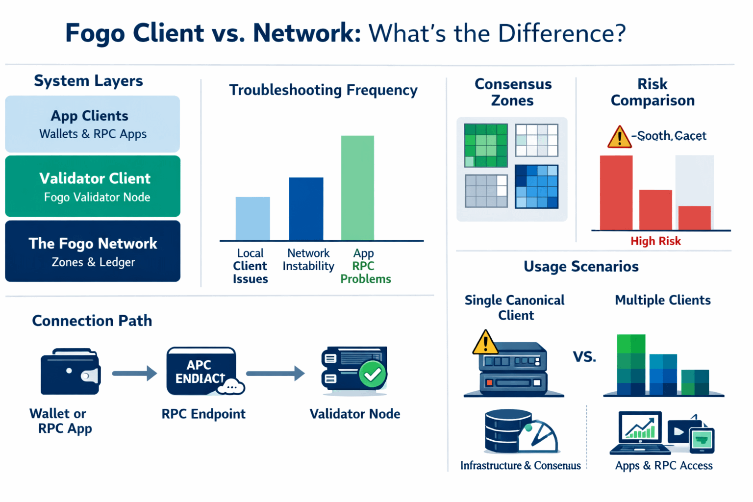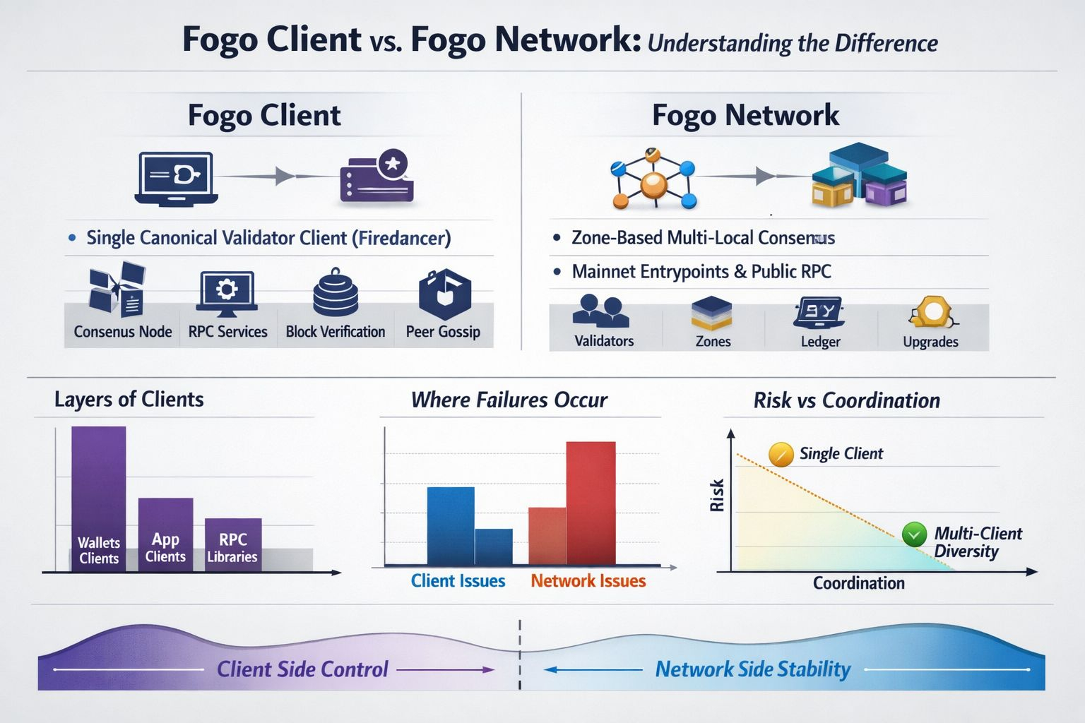 So when someone tells me to “use Fogo,” I’ve started asking a quieter follow-up. Do I need to run a client because I’m operating infrastructure, validating, or testing protocol behavior? Or do I just need the network because I’m building, trading, or checking state? The words are related, but they point to different responsibilities, and mixing them can hide the real decision I’m making.