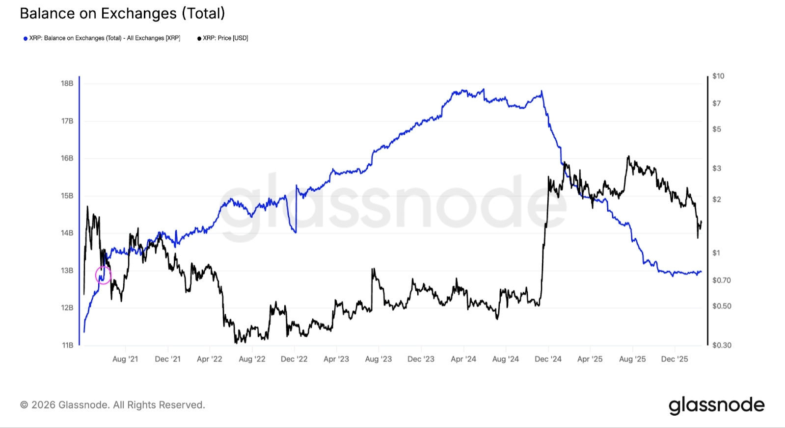Saldo de XRP nas exchanges.Fonte: Glassnode