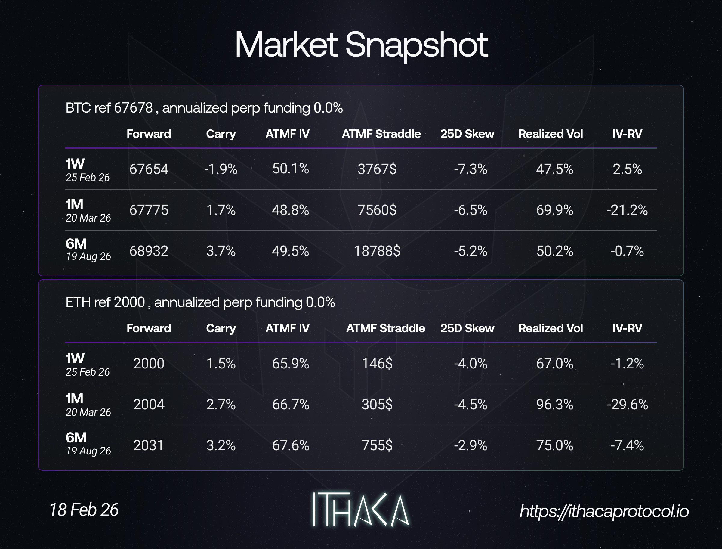 $ETH is holding steady around 2k. Funding neutral, skew flattening, and vols stabilizing. 1M realized remains elevated, but the broader curve suggests risk premium is gradually being rebuilt rather than unwound.