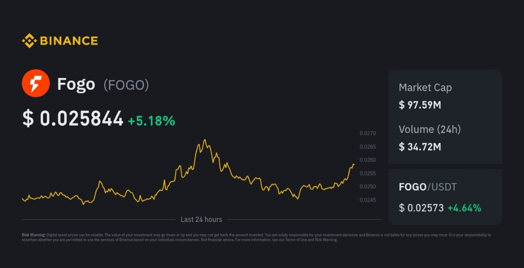 @Fogo Official began trading on Binance around $0.08 at launch after its mainnet debut, but the token has since pulled back and shown volatility typical for newly listed assets.