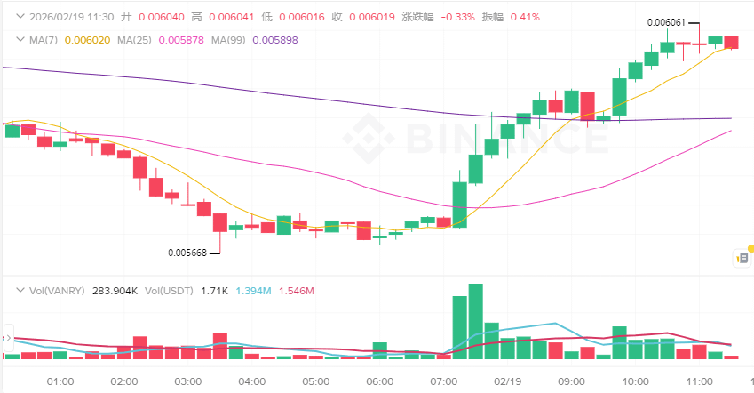目前(2026年2月中旬左右)价格在$0.0057–$0.006附近晃,流通量约2.29B,市值大概$13–15M区间,24h成交$2–3M量级。30天、90天跌幅明显,趋势偏弱。