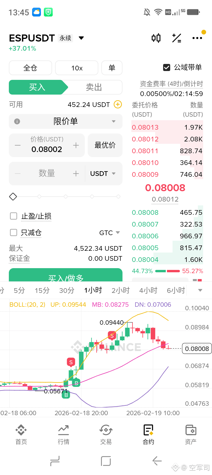 不管做哪个合约,一定不要想着赚最后一#个铜板,不止盈那个钱就是数字,在回撤有可能盈利就没了,盈利大了上面的回撤风险越大,可以减仓用剩余盈利再冲。严格按照小杠杆,小仓位来。最后在强调一遍,止损就是生命线,不设止损就是不把自己的钱当回事。有时候也需要能拿的住,这就要看自己的盘感了,往往大的收益都来至于这种反复横跳在上升的币。说白了稳定的盈利就是来至于小额亏损,再用大的盈利单覆盖。没有百分百胜率的交易员,有那就是骗子。除非你相信我是秦始皇