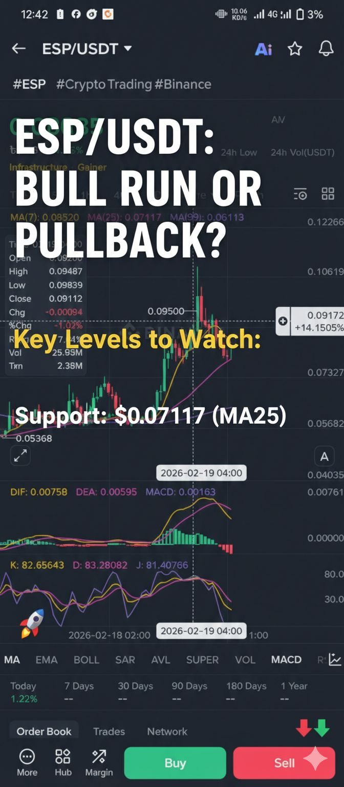 Espresso (ESP) is making waves today with a +34.16% surge! After hitting a high of 0.09500, we’re seeing a classic pullback.