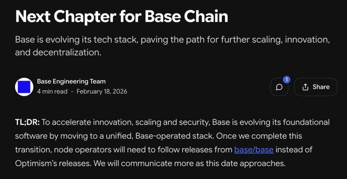 🧵 إعلان انتقال Base إلى كود تشغيلي خاص بها والإستغناء عن $OP