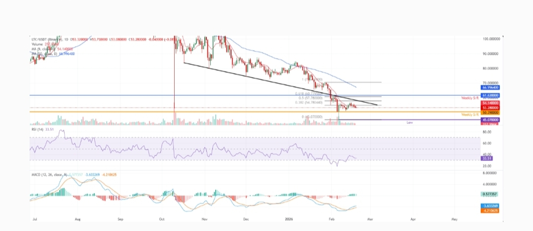 If Litecoin fails to reclaim and hold above $54.78, market focus may shift toward the $50.39 support zone. A decisive breakdown below this level could reinforce the broader downtrend narrative.
