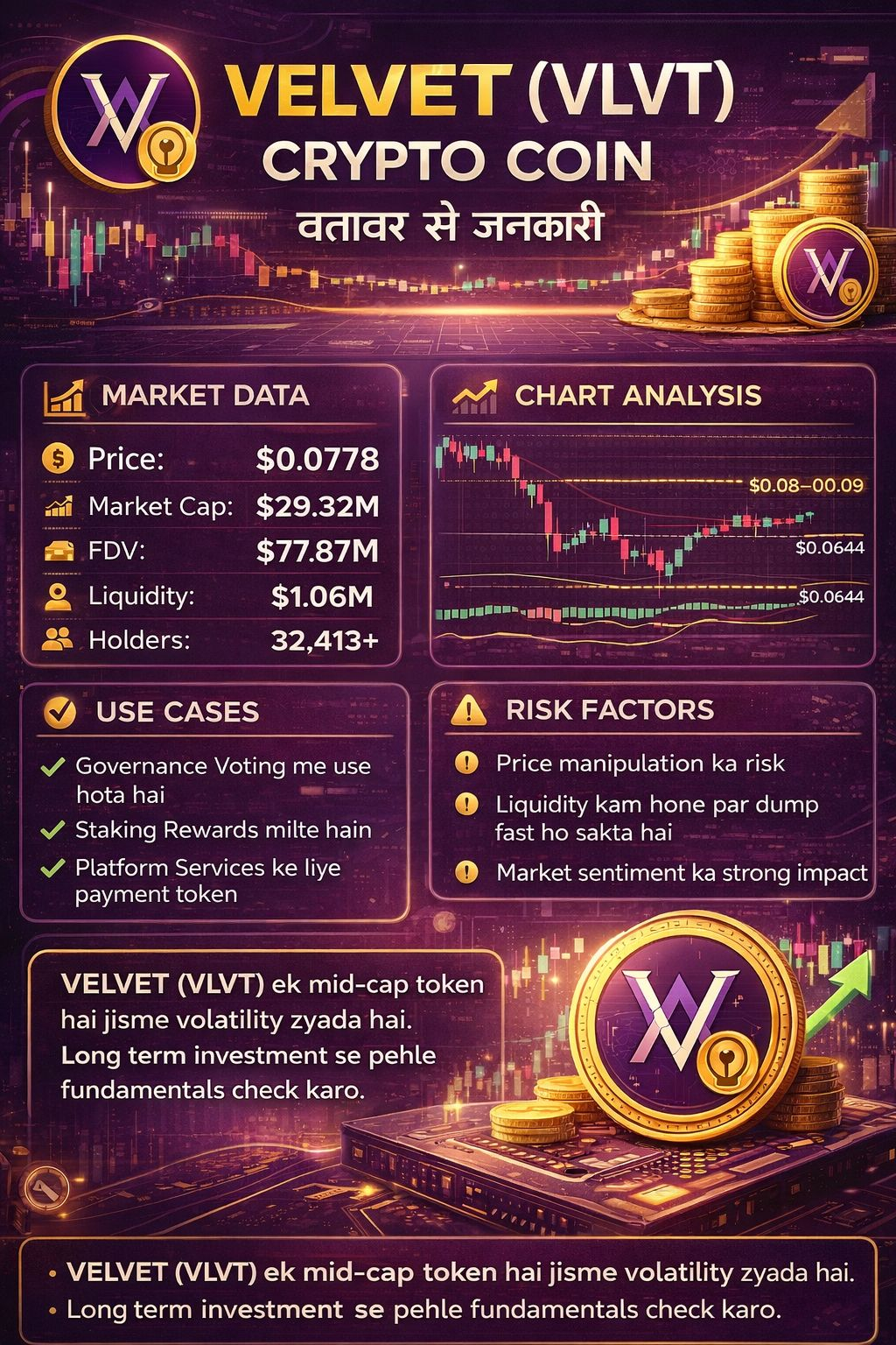 Velvet project ka focus decentralized finance (DeFi), on-chain data aur blockchain based services par ho sakta hai (project ke official documents dekhna zaroori hai). Aise tokens aam taur par: