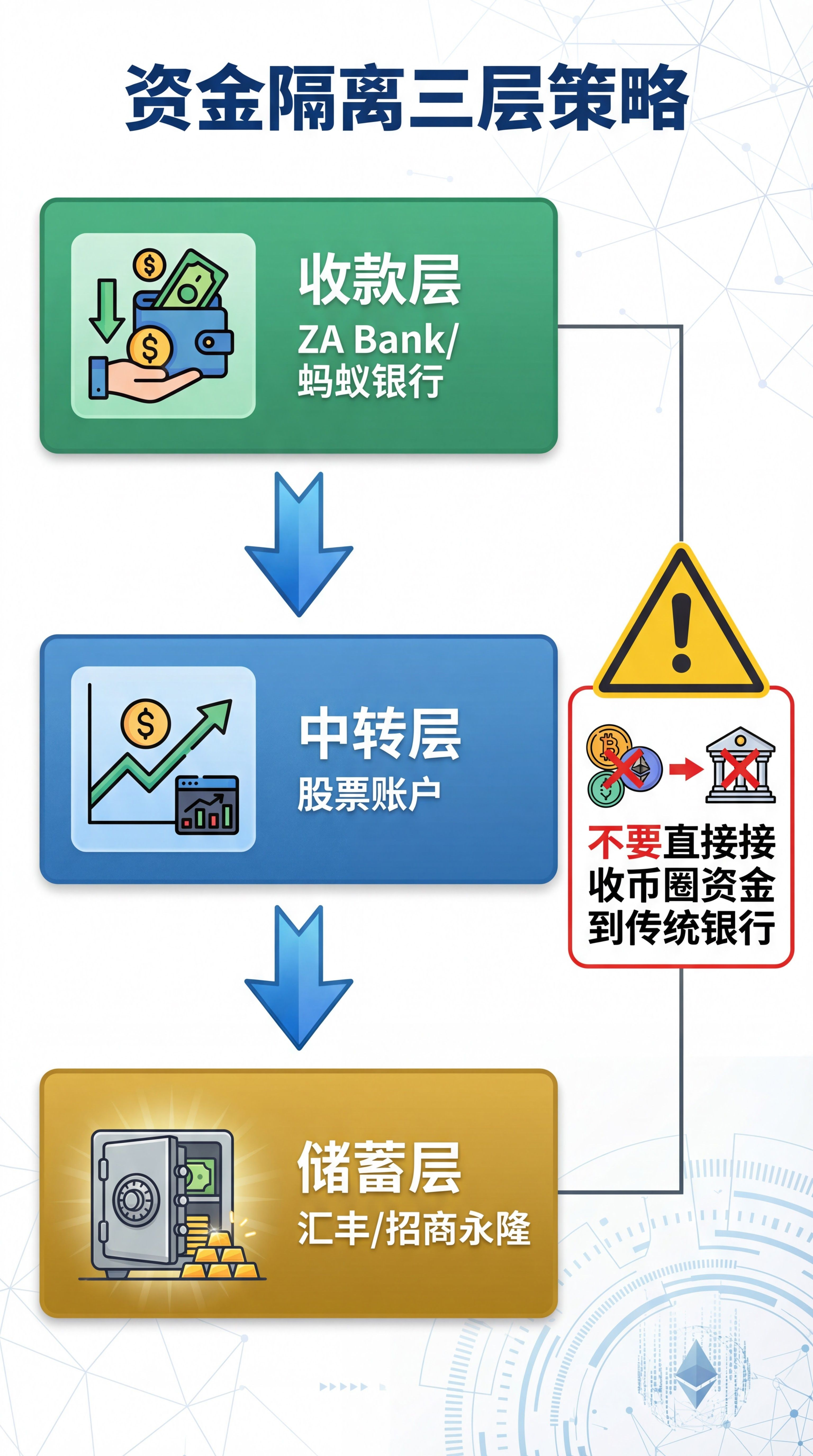 建议资金隔离:虚拟银行收款 → 转入股票账户 → 再转到传统银行