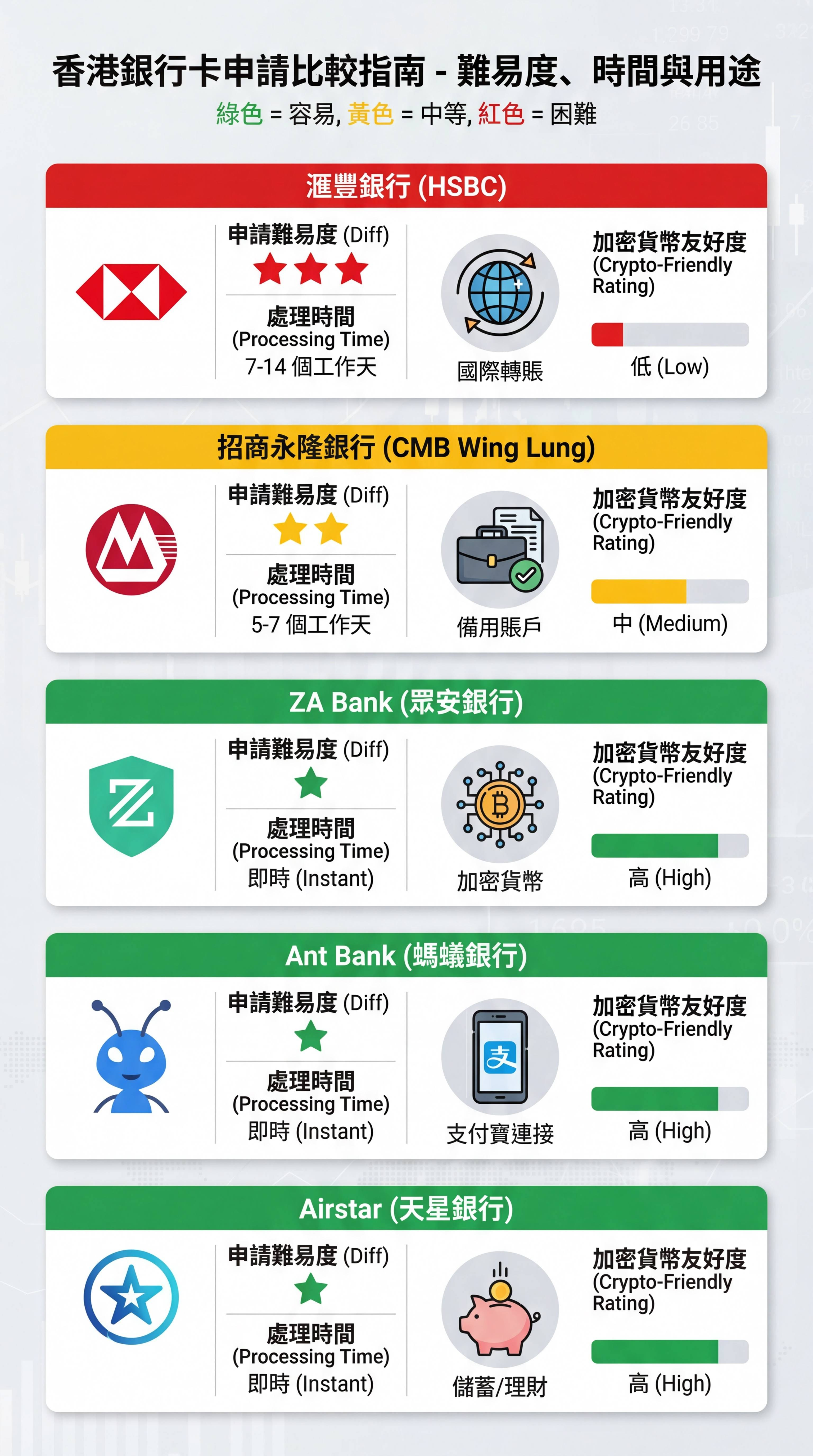 刚从香港回来,2天时间成功办理了汇丰、招商永隆、ZA、蚂蚁、天星 5 张银行卡!同时踩了中银和工商亚洲的坑,被当场拒绝。把这次办卡的完整流程、避坑指南、实用技巧全部整理出来,这可能是目前最详细的港卡攻略了。包含: