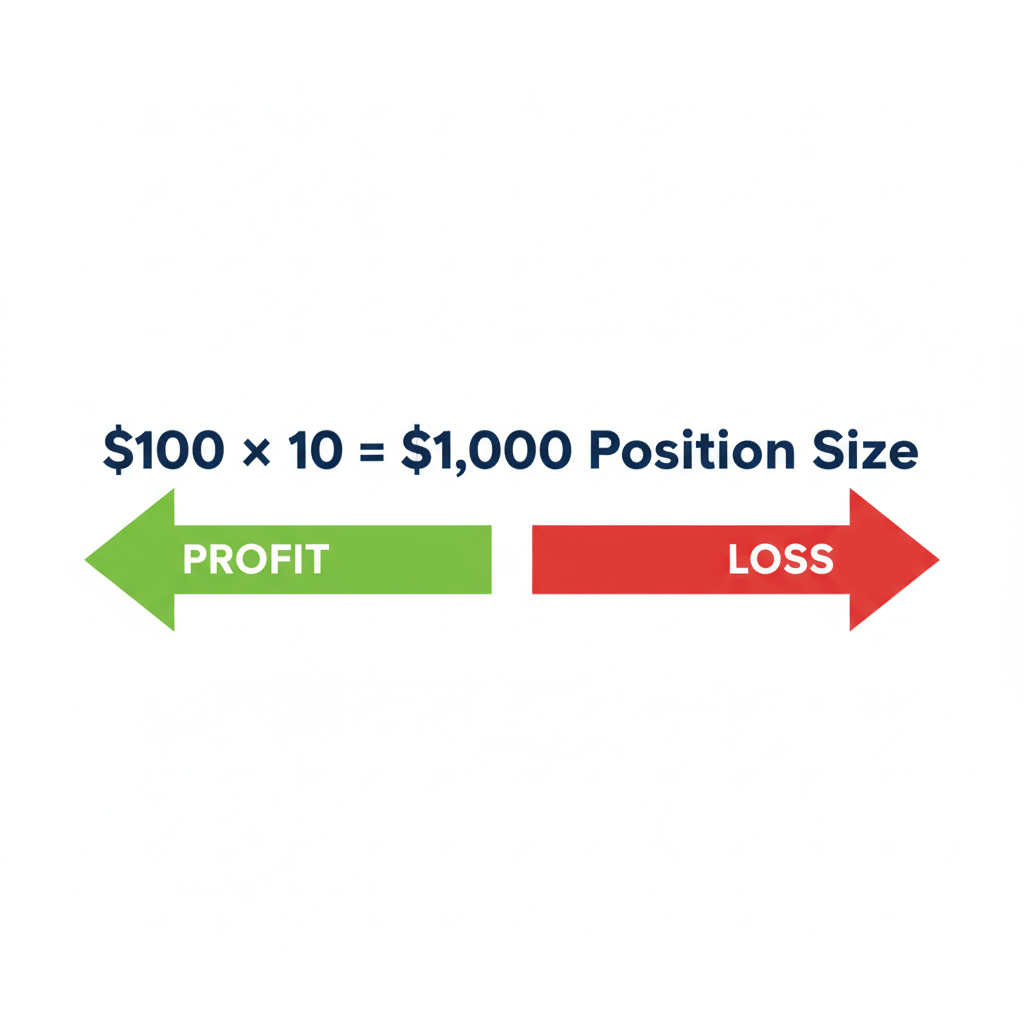 $100 with 10x leverage = $1,000 position.