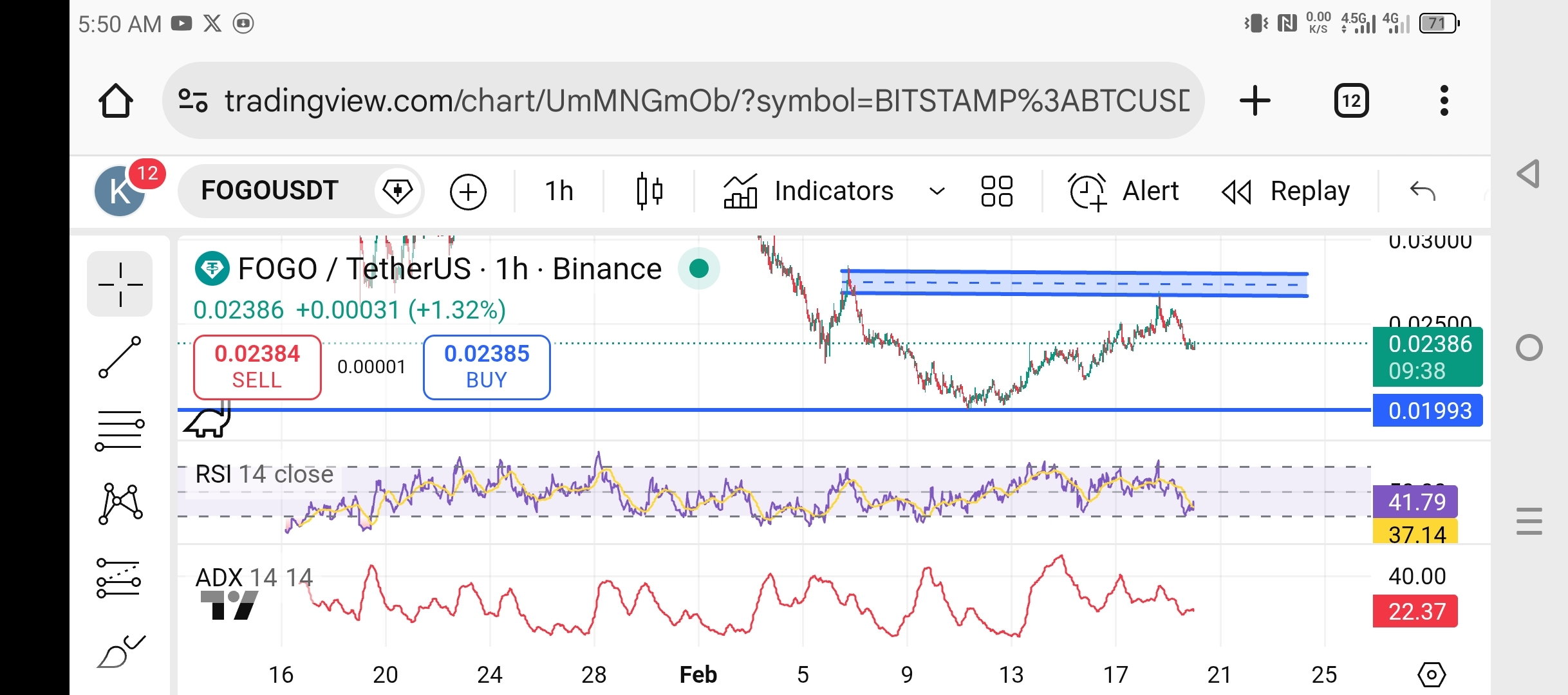 This 1-hour FOGO/USDT (Binance) chart shows a market that is trying to recover after a strong correction.