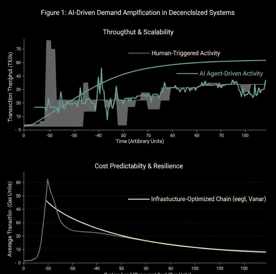 Every loop consumes infrastructure.It requires execution layers to process transactions, storage layers to manage data, interoperability systems to access cross chain liquidity,and fee markets to price activity.If one AI agent executes 1,000 micro transactions daily and thousands of agents operate simultaneously, demand scales non linearly.This is not speculative growth it is structural expansion driven by automation.