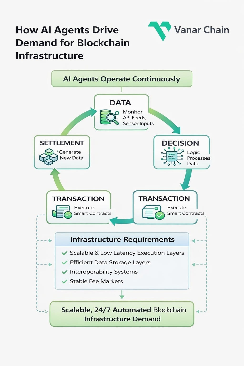My overall view is that AI agents transform blockchains from event driven systems into continuously operating economic platforms.The networks that design for persistent machine demand,rather than emotional retail participation,are better positioned structurally. When I evaluate Vanar Chain,I ask whether its architecture anticipates that 24/7 automated demand.If it does,then it is not just participating in a narrative it is aligning with a fundamental shift in how blockchain infrastructure will be used.