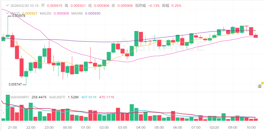 $VANRY 价格在0.0058-0.006美元附近晃,市值1300-1400万美金左右,流通量大概22.9亿,最大供应24亿,24小时成交量也就200-500万美金这个级别。这个体量在2026年的AI叙事里不算大,但也正因为“小”,判断起来反而清楚——不会被K线带着走,能静下来看它到底在搭什么。