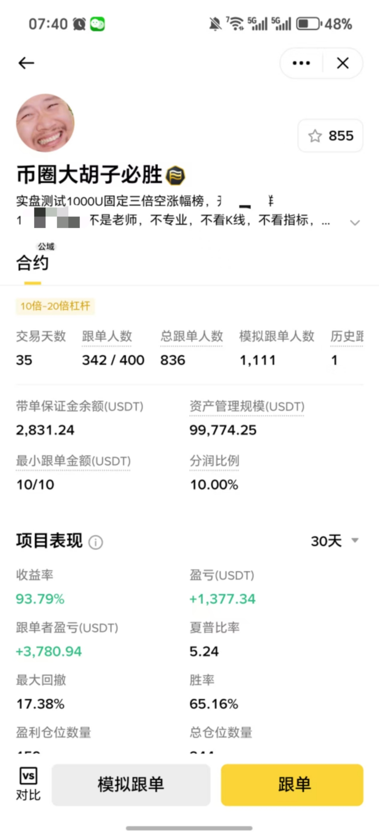 跟单可以在币安合约上面搜索币圈大胡子必胜