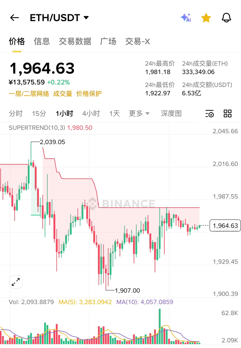 * ETH: 1,975 - 1,980 是绝佳空点。现在的 1,980 就是一堵叹息之墙,到了就空,止损放 1,990。