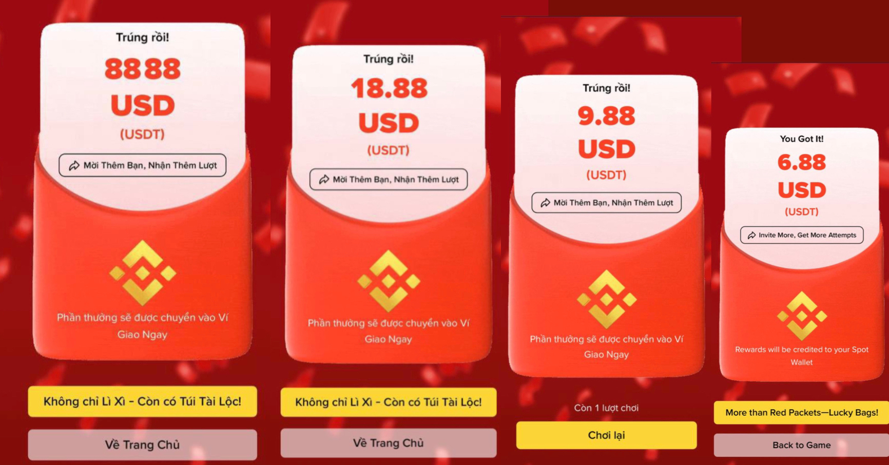 • Each Lucky Bag contains a random USDT voucher ranging from 1.8 to 28 USDT.