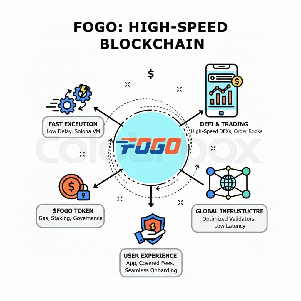 FOGO is a Layer 1 blockchain, but it’s not trying to be everything for everyone. The whole design is focused on fast execution, low delay, and clean performance. It runs on the Solana Virtual Machine, which is already known for speed, but FOGO pushes it even further. Blocks come in milliseconds, transactions settle fast, and the chain feels built for people who don’t want lag when money is on the line. This kind of setup makes sense if you’re thinking about order books, liquidations, or any trading where timing is everything.