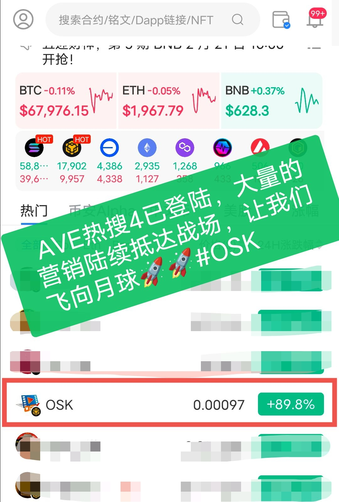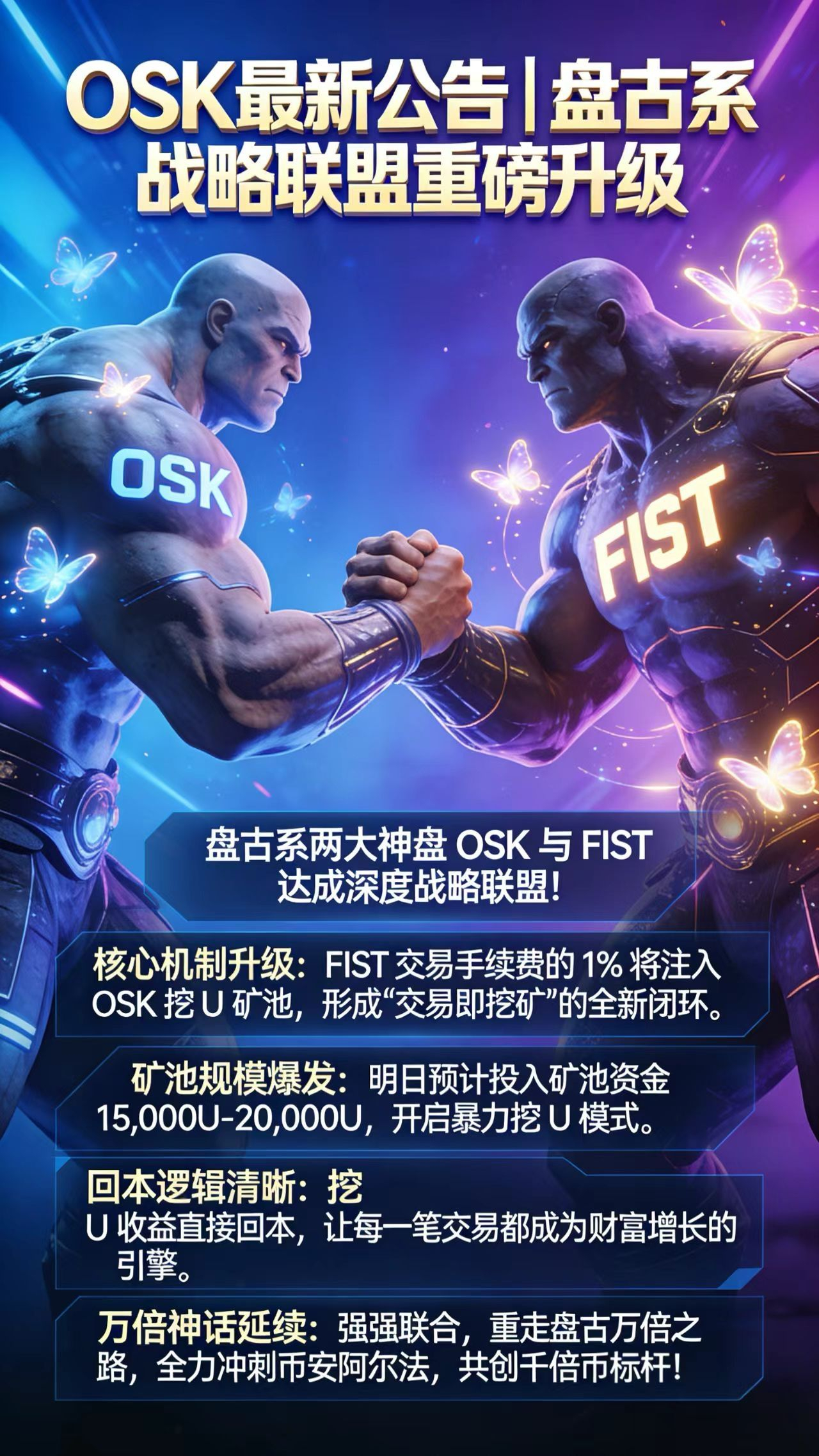 • 万倍神话延续:强强联合,重走盘古万倍之路,全力冲刺币安阿尔法,共创千倍币标杆!OSK$