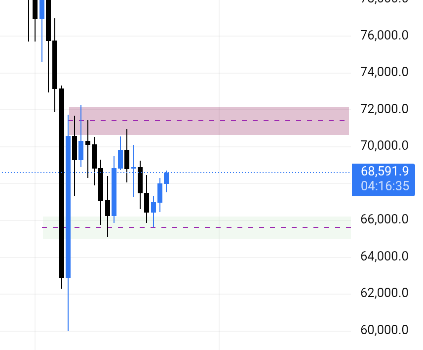 Here we can btc is taking support from the 66k zone and headed toward its next resistance zone which is around 71 k zone. If it breaks above it we might see btc heading 80k zone daily fvg.But as intraday trading we trap in daily range we should avoid trading