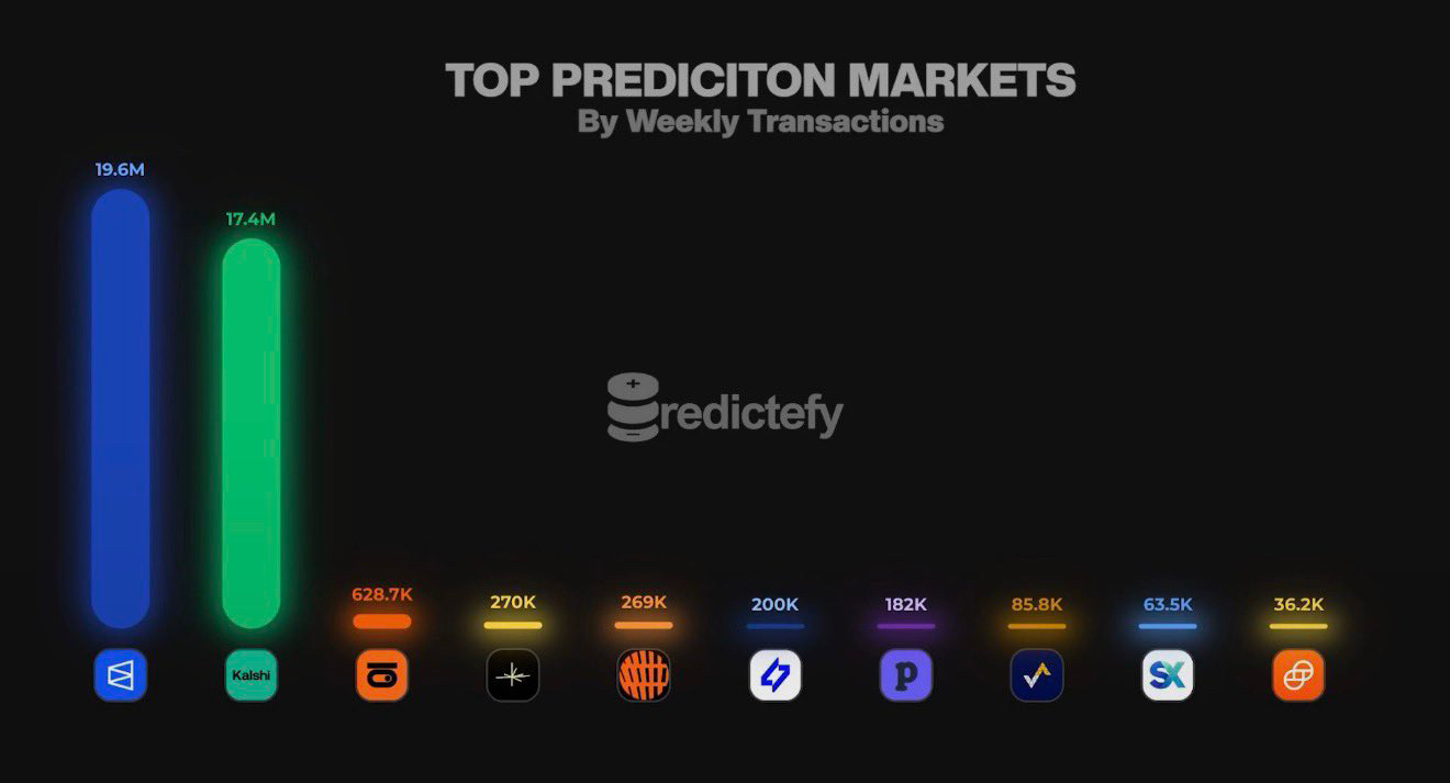 Trong khi đó, Probable nằm trong top ba sàn giao dịch có khối lượng giao dịch cao nhất trong tuần qua, chỉ đứng sau Polymarket và Kalshi.