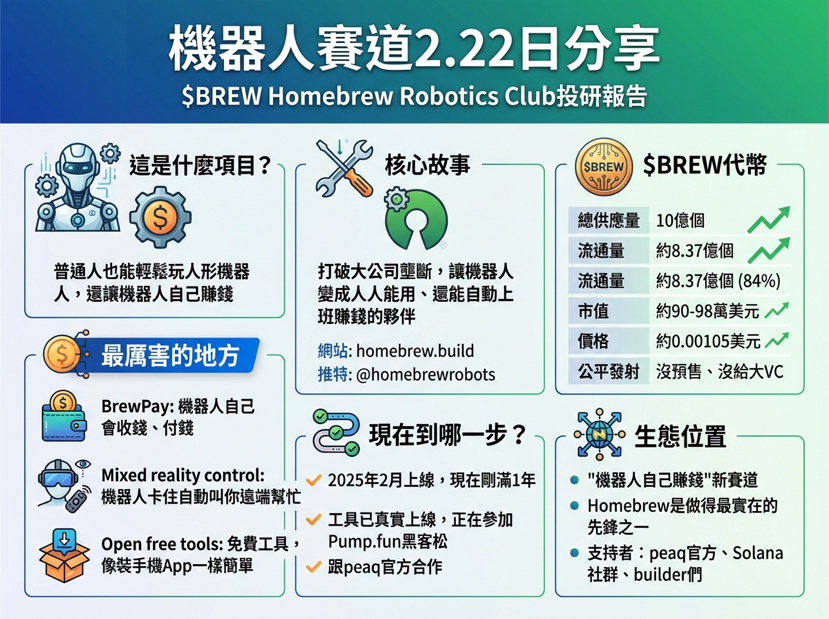 現在機器人被大公司壟斷,又貴又封閉。 Homebrew 用開放工具 + 加密貨幣 打破這一點,讓機器人變成「人人能用、還能自動上班賺錢」的夥伴。