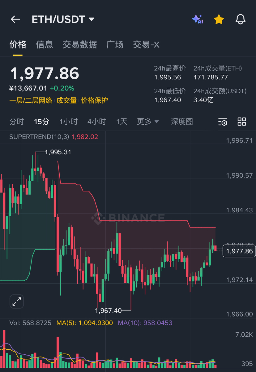 * ETH: 1,975 - 1,982 区间空进去,止损放在 1,985。破了红线就跑。
