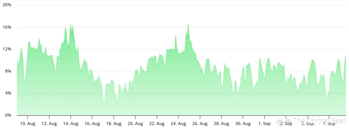 Futures Funding Rates: The perpetual futures funding rate is at a neutral 11%, which is a slight improvement from the previous week but still shows a lack of strong bullish conviction. This suggests that traders aren't willing to pay a premium to hold long positions.