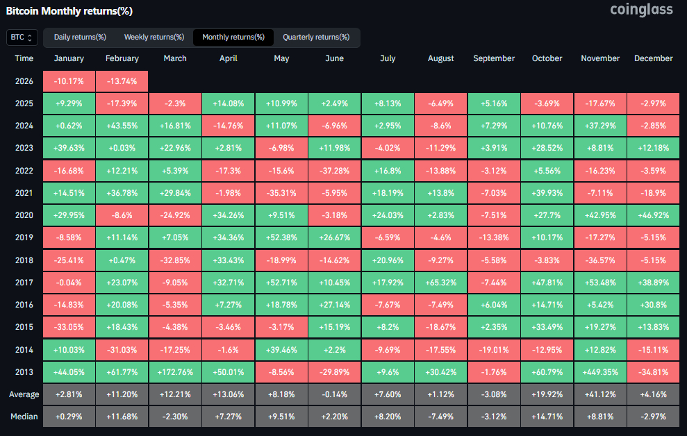 February still has time to reverse course. A weekly close above $43,000 would change the narrative entirely. But as the days tick down, the probability of making unwanted history increases.