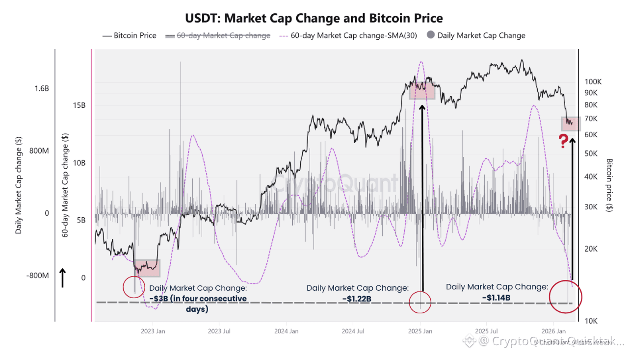 However, context is key: in previous cycles, once forced deleveraging completed and USDT flows stabilized, Bitcoin transitioned into strong medium-term upside as liquidity conditions normalized.