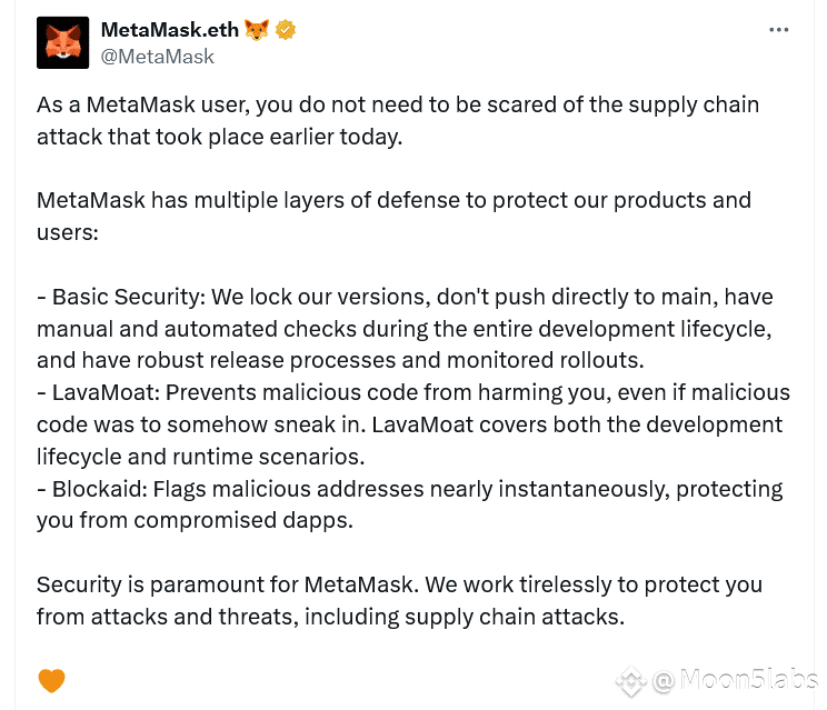 Ledger and MetaMask confirmed their apps were unaffected, citing multiple security layers.