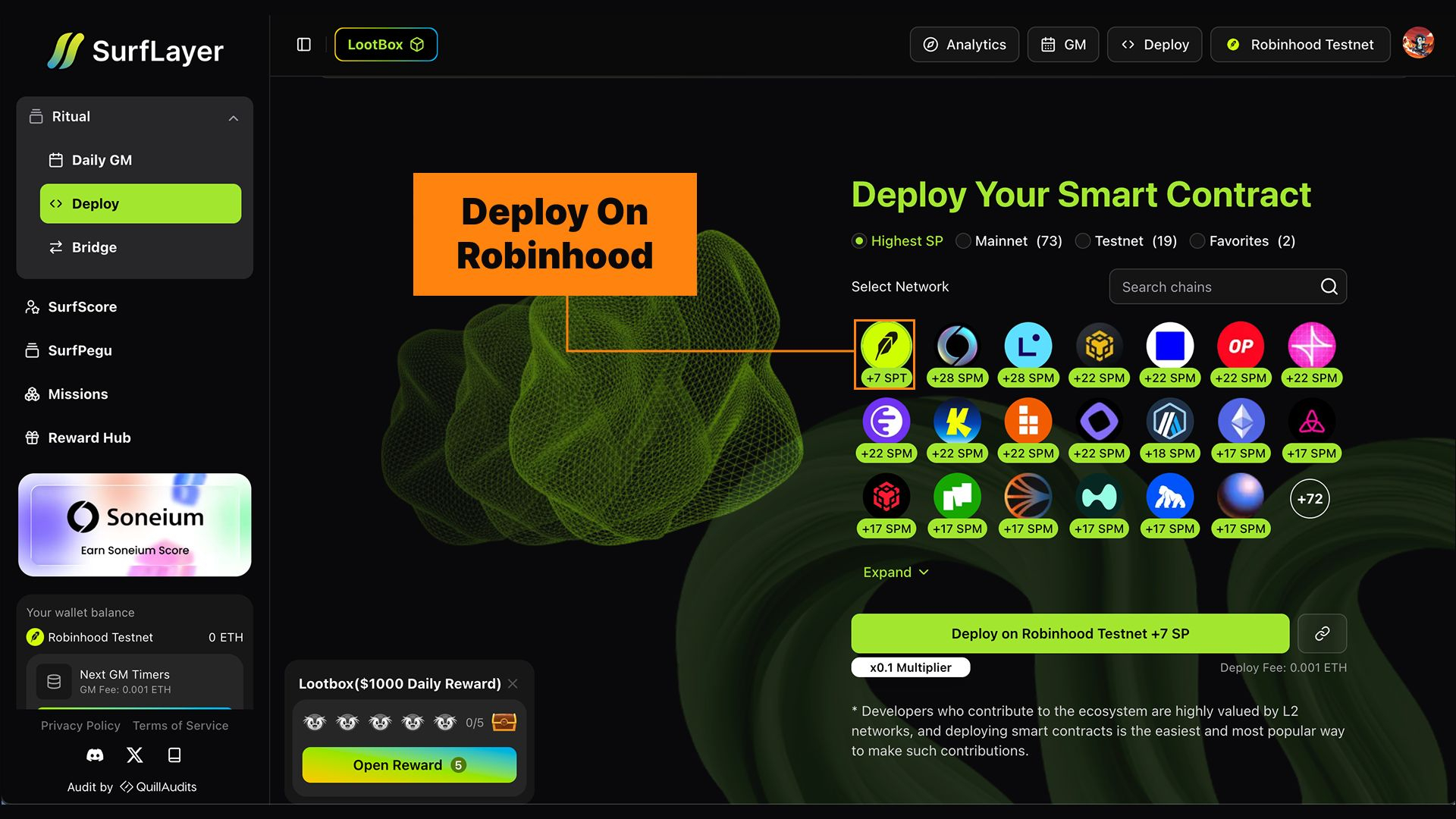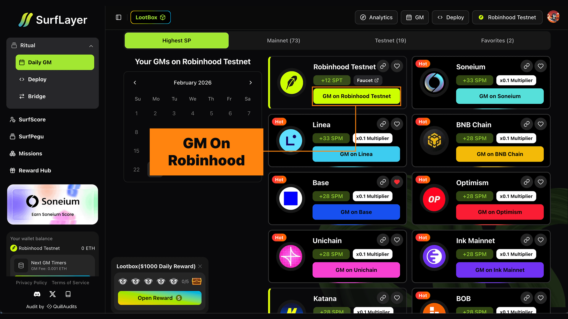 Through low-friction tools, transparent reward mechanisms, and measurable activity tracking, SurfLayer helps users establish a credible on-chain presence on Robinhood Chain — one transaction at a time.