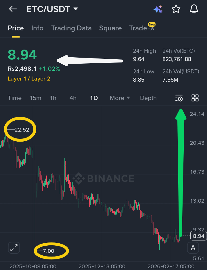 $ETC Deep corrections exceeding 60% often push assets into value-based accumulation zones where long-term participants begin positioning. While macro structure remains bearish, downside momentum is slowing near support. A confirmed breakout above $11.00 with strong volume could initiate a relief rally toward $13–$14. Until confirmation appears, disciplined accumulation near support with strict risk management remains the calculated approach.