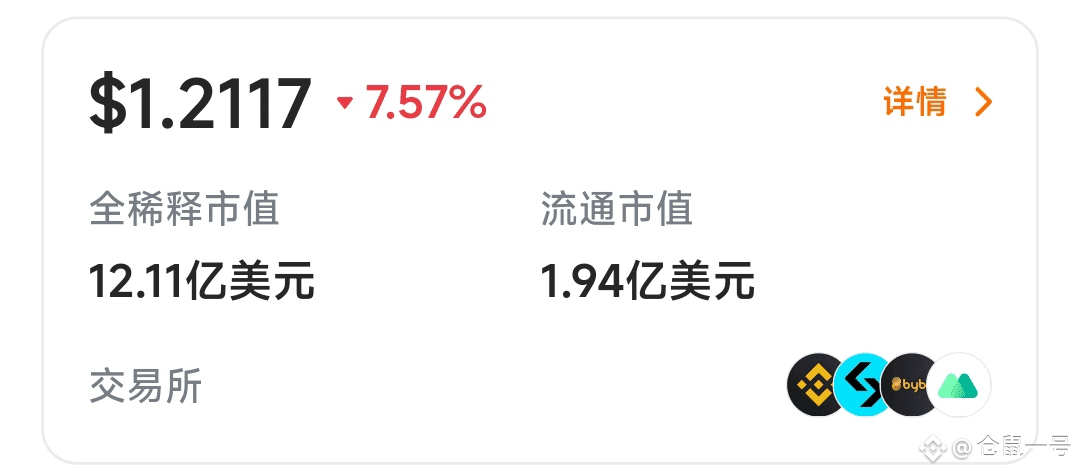- 代币价格:$1.2117,较近期下跌7.57%