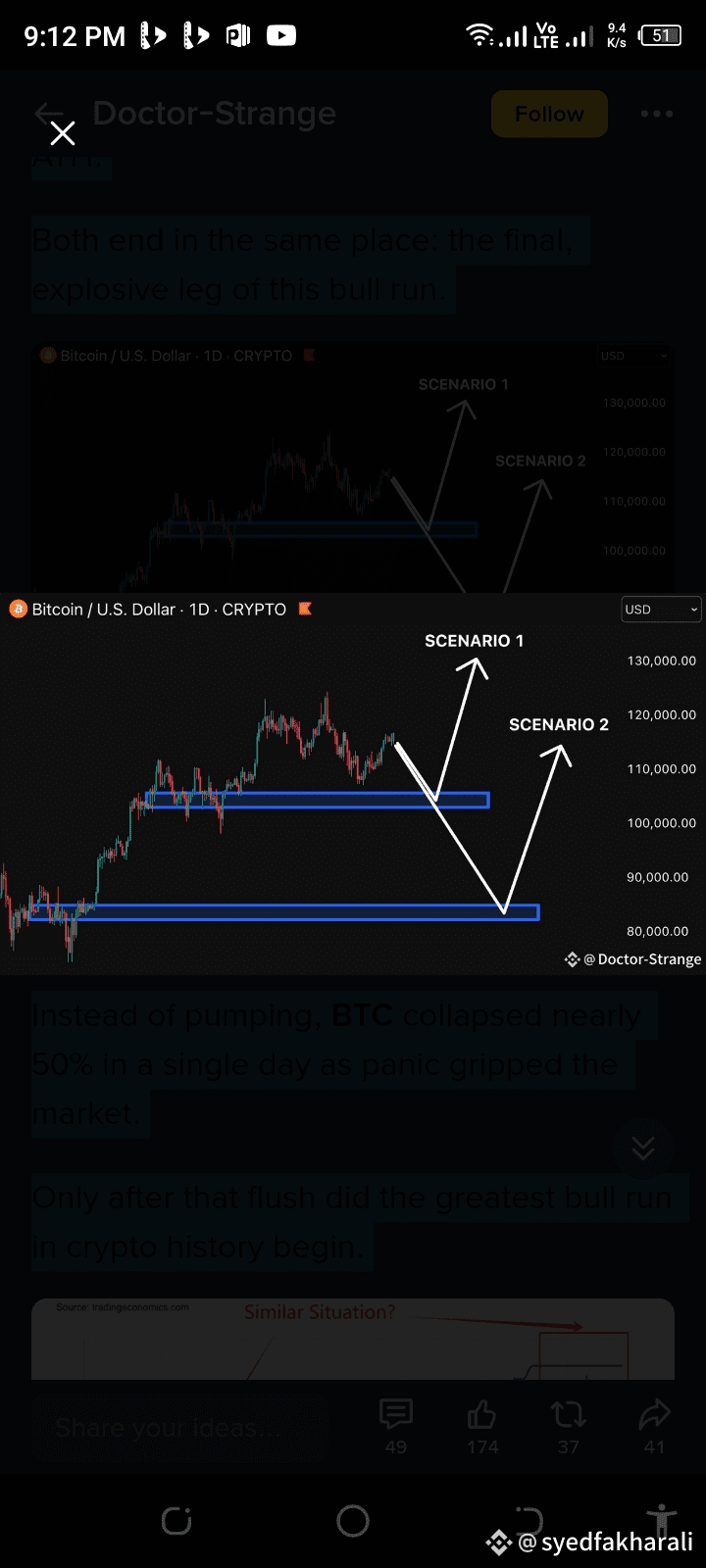 Instead of pumping, BTC collapsed nearly 50% in a single day as panic gripped the market.