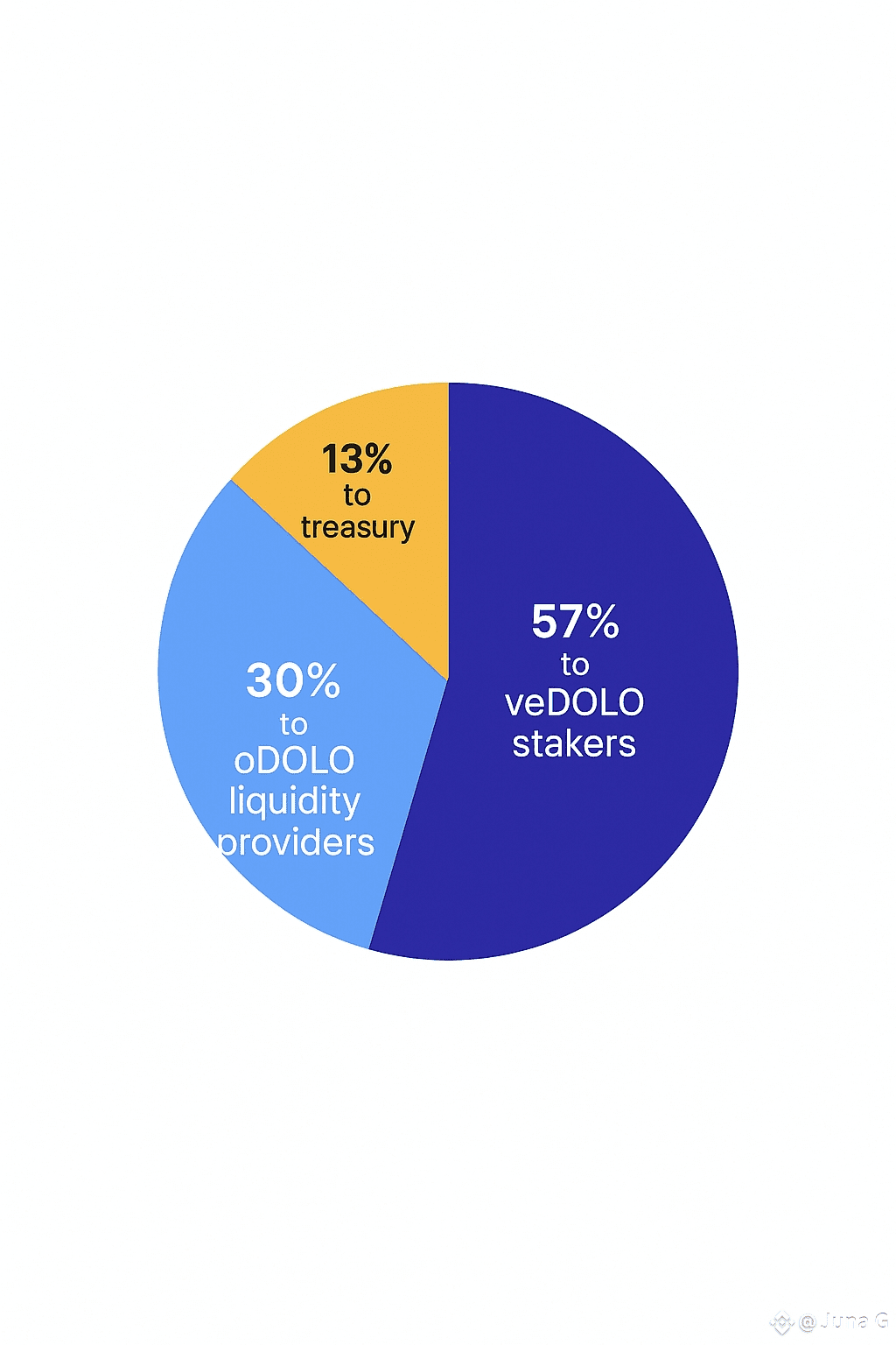 Fee Sharing: Earn a share of protocol revenue (57% of fees distributed to veDOLO holders) .