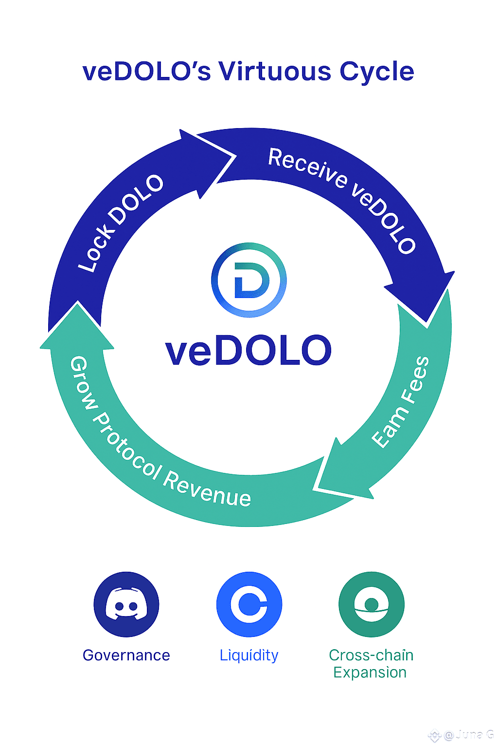 Reward Distribution: Fees funnel back to veDOLO holders, reinforcing staking.