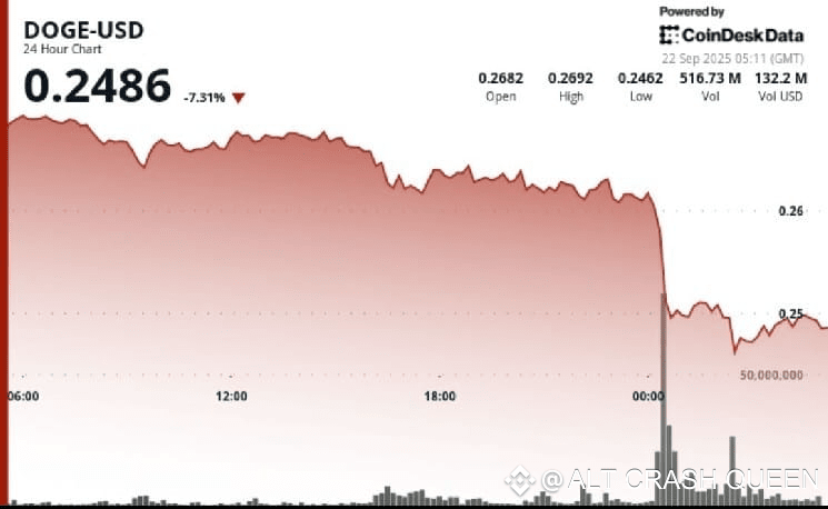 • $DOGE упал с $0.27 до $0.25 — ночной слив на объёме 2.15B токенов