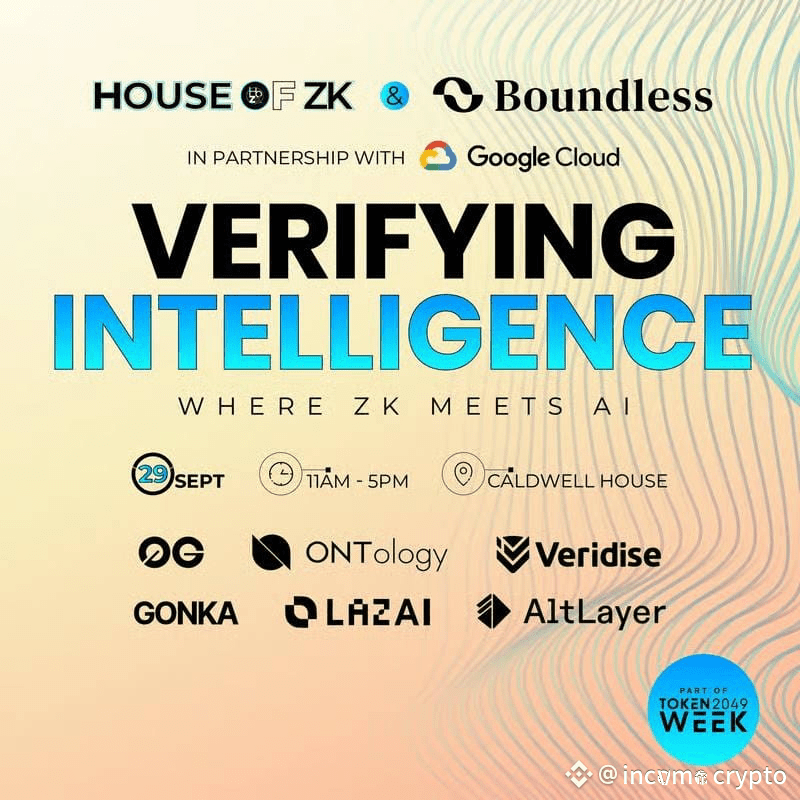 Boundless ZKC और House of ZK ने Google Cloud के साथ मिलकर “Verifying Intelligence: Where ZK Meets AI” नाम का इवेंट आयोजित किया। यह कार्यक्रम 29 सितम्बर को Caldwell House में हुआ और Token2049 Week का हिस्सा होने के कारण crypto और AI communities के बीच बड़ी चर्चा बना। Boundless ZKC इस पूरे event का केंद्र रहा क्योंकि इसका core vision ही है verifiable compute को हर chain तक पहुंचाना।