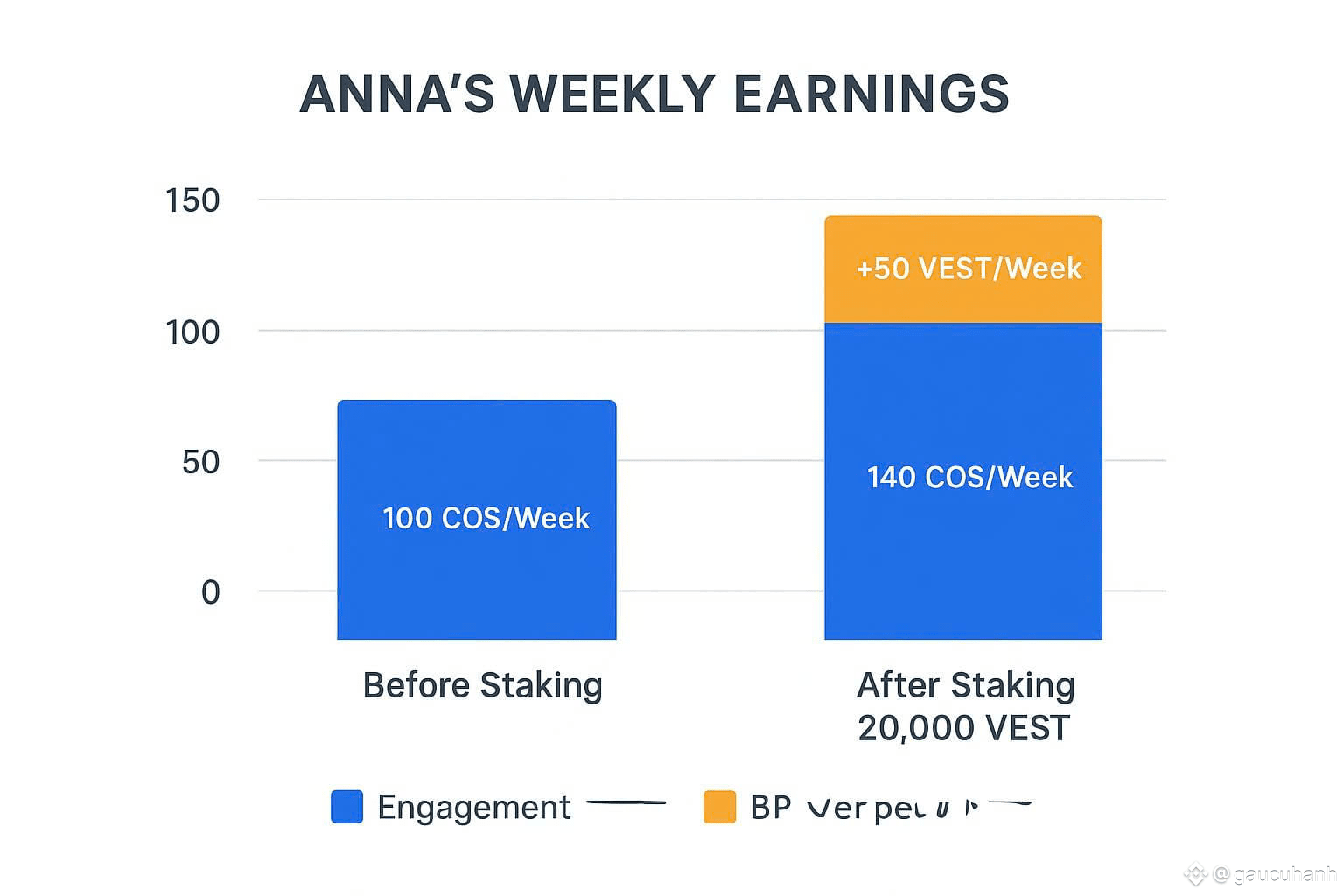 Anna’s story illustrates a bigger truth: staking COS into VEST is not just about earning more—it is about becoming more. More empowered, more influential, more connected to the ecosystem’s future.