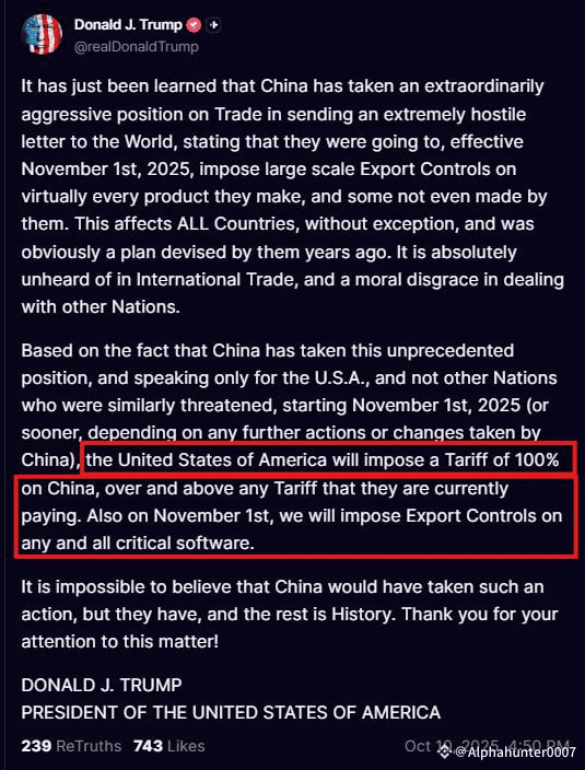 But when the official statement came which was 100% tariffs on all Chinese imports starting Nov 1, things escalated fast.
