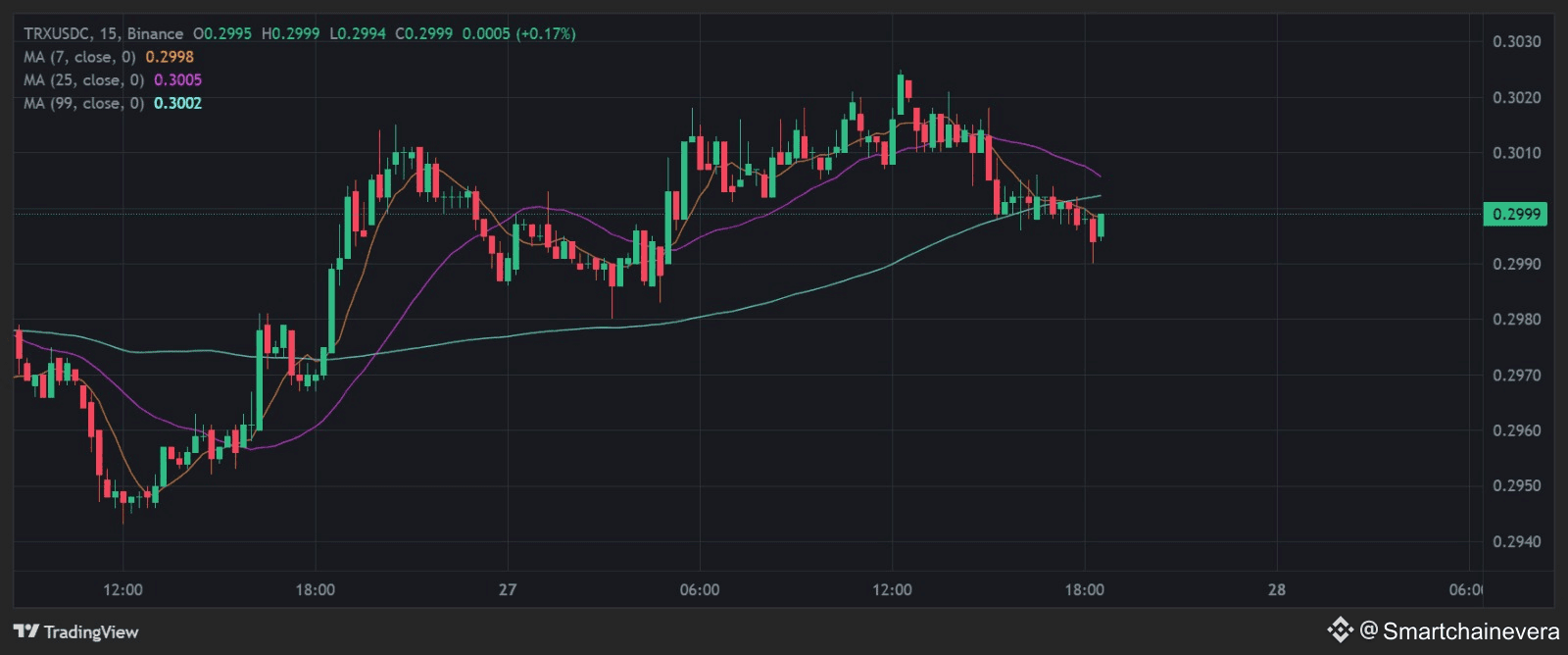 Currently, TRX is trading between the MA 25 and MA 99, suggesting a period of consolidation.