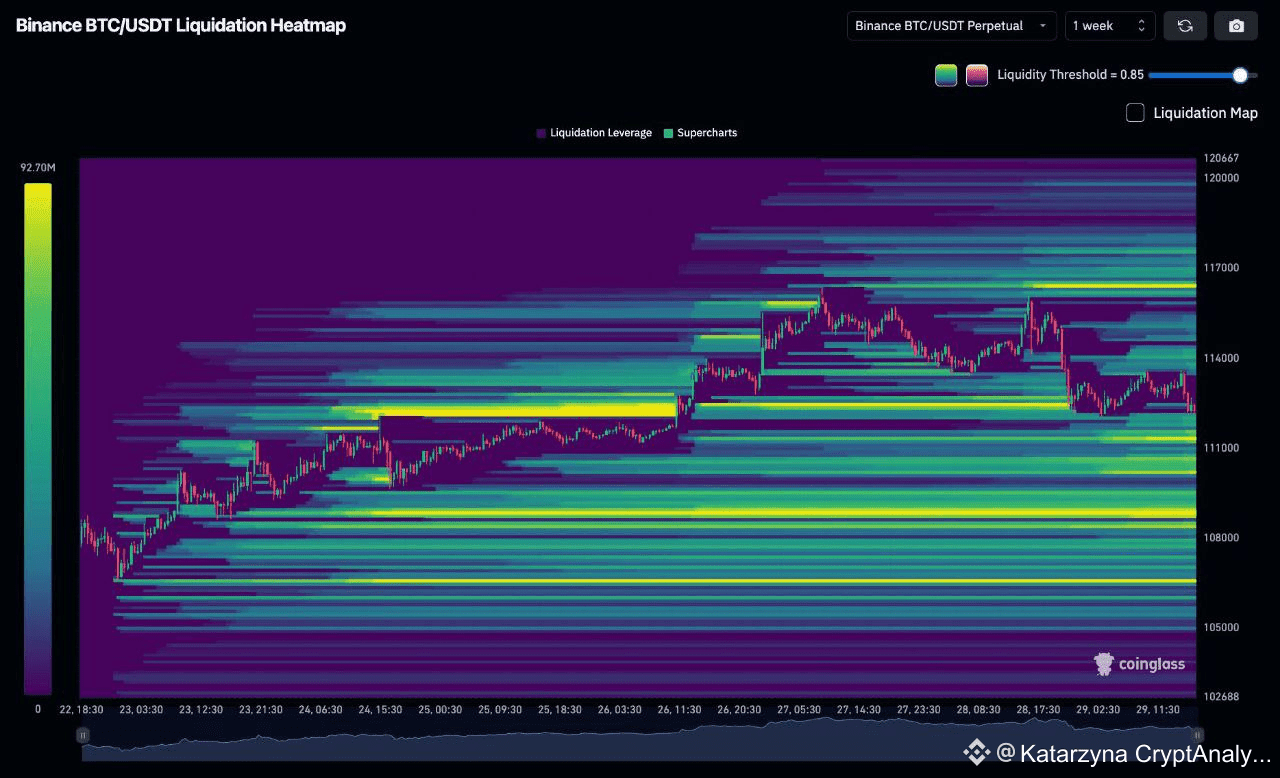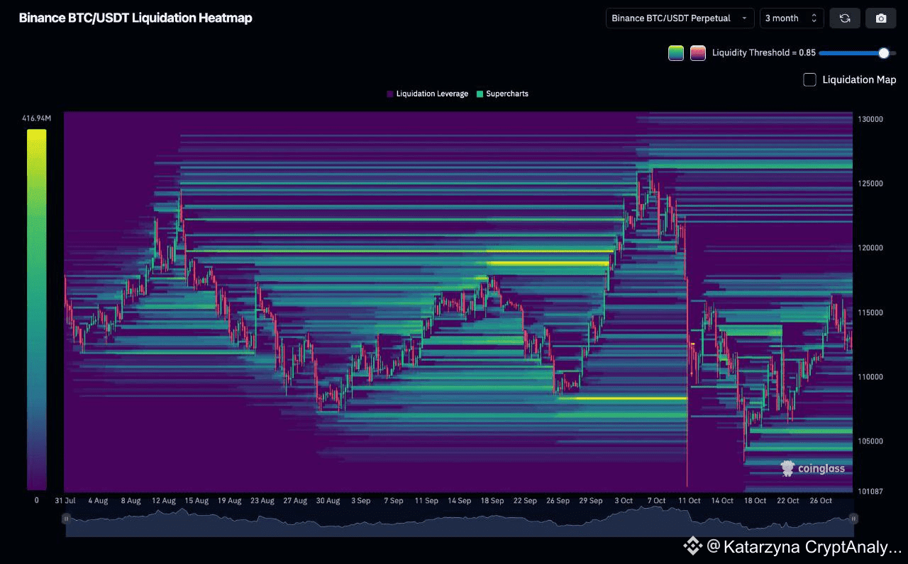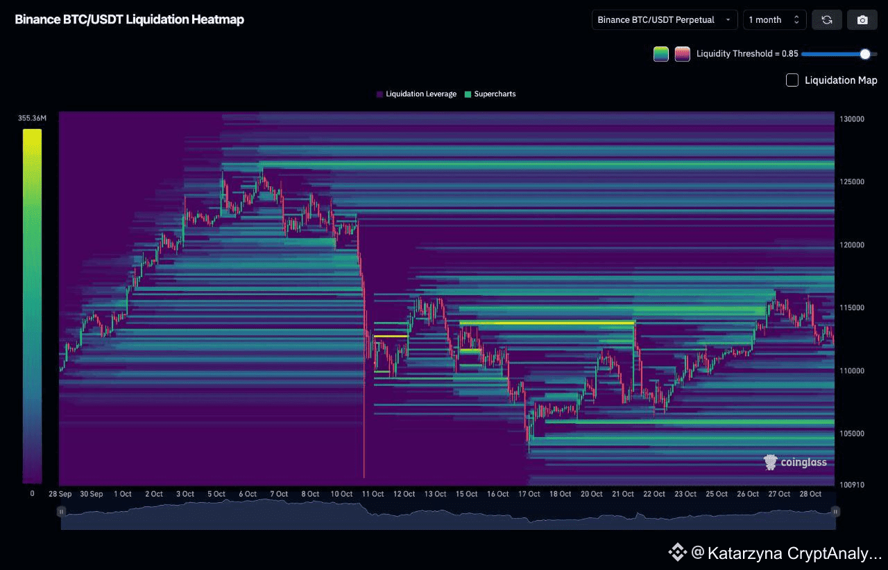 Тепловая карта ликвидности BTC на Binance, самые яркие уровни:
